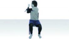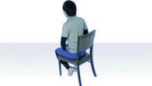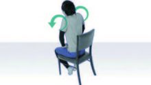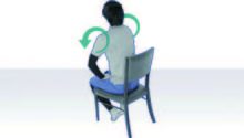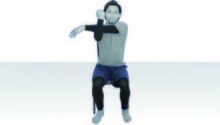 椅子に腰掛け、胸の前で肘に腕 をかけます